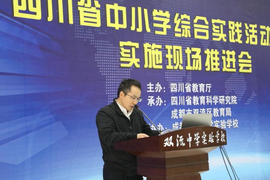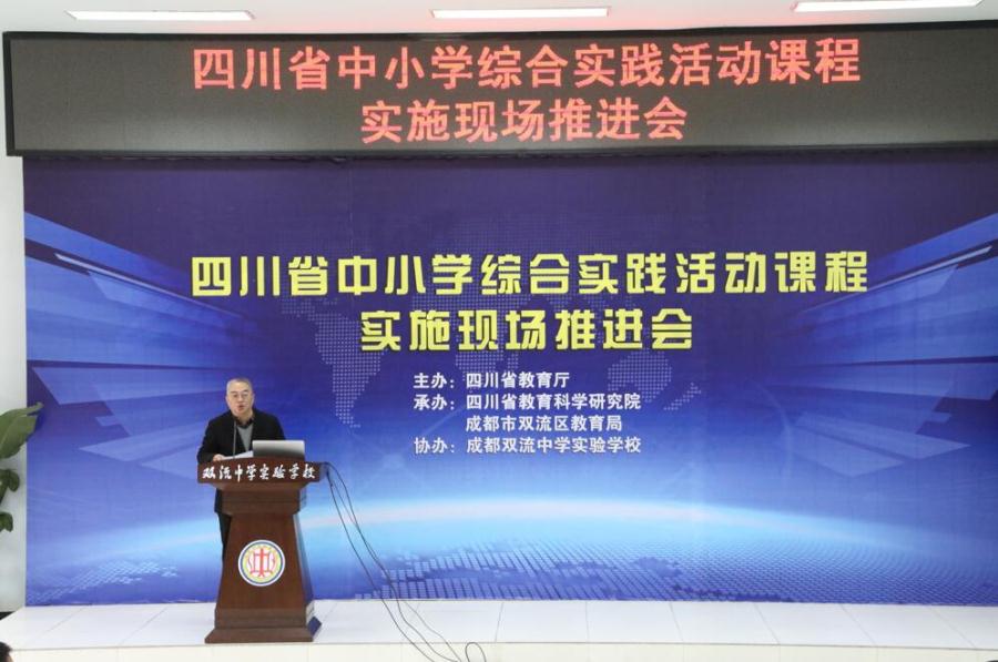 本次会议由四川省教育厅主办,四川省教育科学研究院、成都市双流区教育局承办,我校协办。出席会议的部分领导、专家有 四川省委教育工委委员、省教育厅副厅长、党组成员崔昌宏,四川省教育科学研究院院长刘涛,四川省教育厅基础教育处副处长包世华,中国教育学会原副会长郭振有,北京师范大学教授李亦菲。会议由刘涛院长主持。全省各市州教育局分管领导;基础教育科(处)负责人;各市州教科所(院)长或分管领导;各市州综合实践活动课程教研员;学校校长代表共计150余人参加了会议。