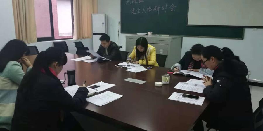 2018年11月22日,星期四,地理教研组全体教师在图书馆备课室三参加由钟英组长主持召开的健全人格教育专题研讨会。本次研讨会邀请了课题组文科评价小组组长张玉萍老师。