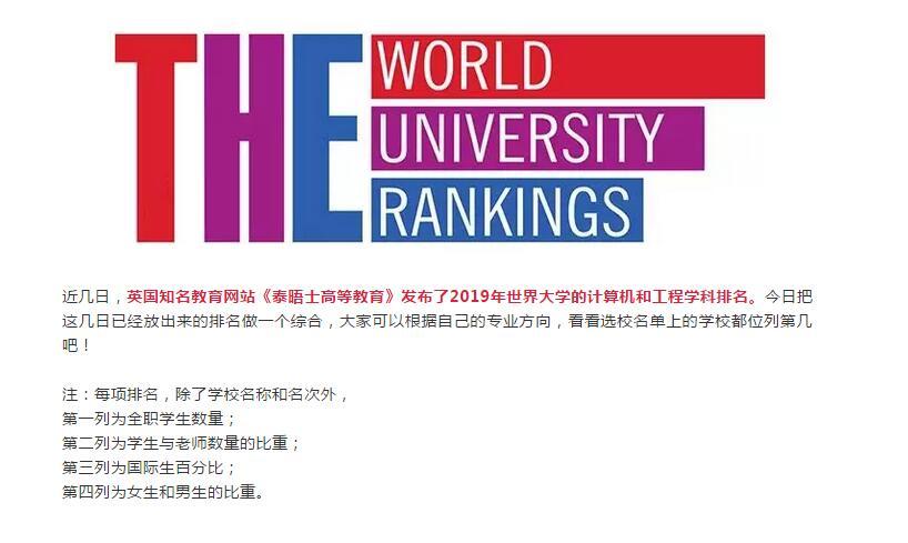 升学|泰晤士2019世界大学【学科】排名:计算机、商科、工科…谁第一?