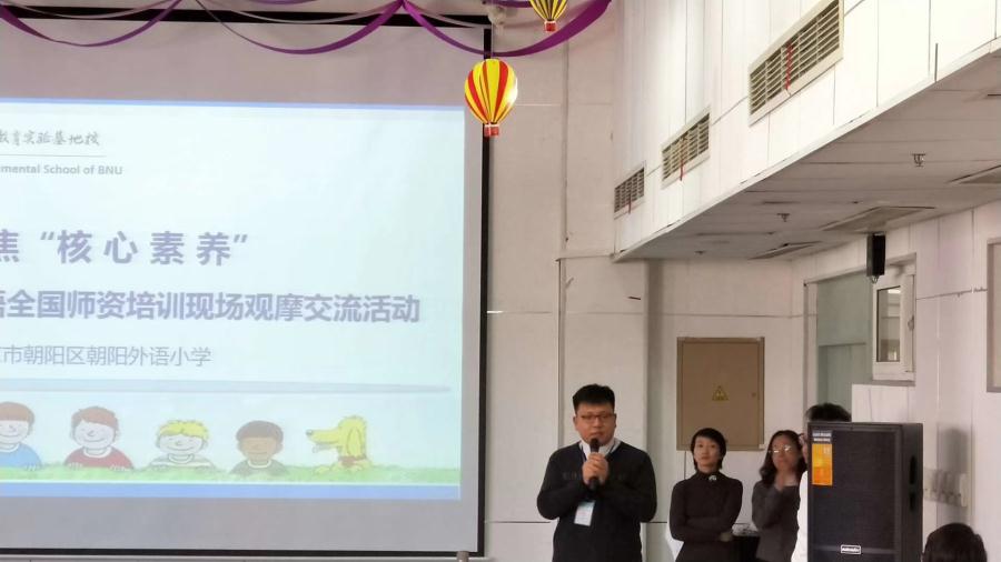 2018年12月11日,“聚焦核心素养,第25期典范英语全国师资培训”在北京理工大学国际交流中心拉开了序幕。我校欧英名师工作室导师欧英老师和杨四维老师参与了此次大会。本次为期三天的盛会,汇集了来自全国各地的英语教师,教研员和教育专家。北京外国语大学中国外语与教育研究中心副主任博士生导师韩宝成教授作了题为《整体外语教育与英语学科核心素养》的专题报告;北京外国语大学连艳普教授作了《典范英语绘本特色教学》及《非虚构类文本阅读的教学特色与方法》的专题报告。12月13日上午,我校英语组杨四维老师和北京朝阳外小的学生们为参会专家、老师们带来了一堂《典范英语》的示范展示课。
