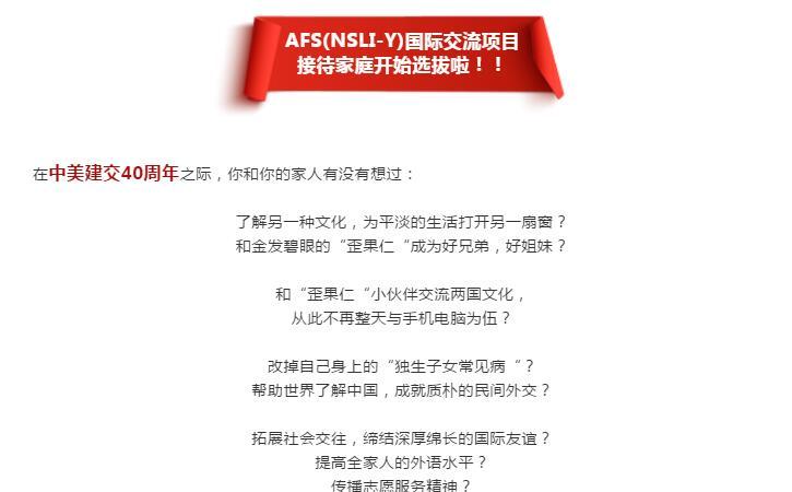 2019 AFS(NSLI-Y)国际交流项目 接待家庭开始选拔啦!!