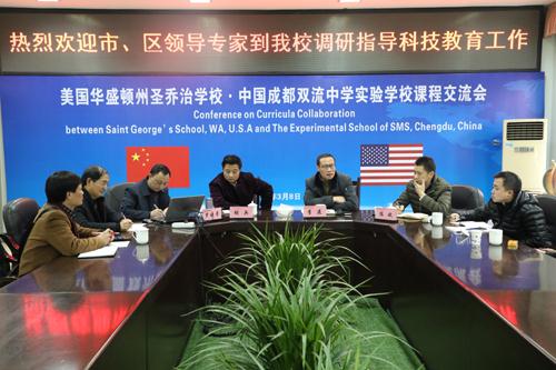 2019年3月7日下午,成都市科协副主席李展携成都市青少年科技活动中心胡兵主任、负责科创大赛的刘佳老师及双流区科协陈斌主任,到我校调研科技教育工作。校长助理罗晓章、教科室主任文传福、科创备课组长段绪德等陪同调研。