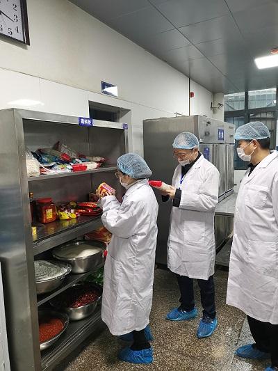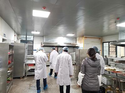 检查组在食堂经理王经理和食堂安全监管员的陪同下,重点对食堂仓库、食品贮存冰柜、食品留样记录、餐具消毒记录、食品添加剂台账、卫生间清扫记录、工作人员健康证、明厨亮灶等方面进行了详细检查,并专门对操作间的卫生情况提出了整改意见,确保食品安全每一个流程落实到位。通过检查,检查组对食堂卫生、食品添加剂使用记录、餐具消毒记录等予以充分肯定,并详细询问相关食品卫生工作的管控措施,听取了餐饮中心相关人员的讲解汇报。