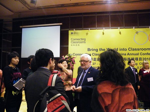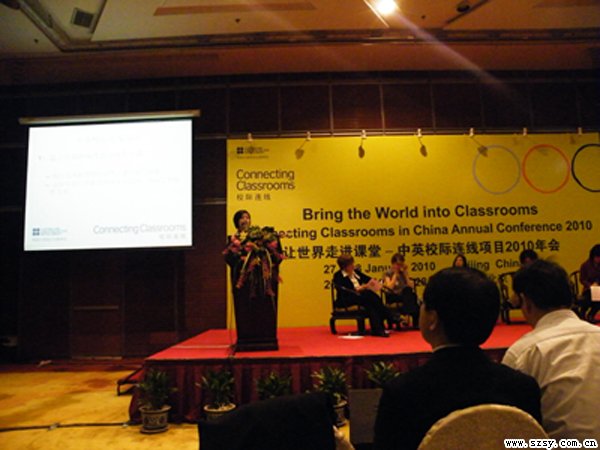 2010年1月27日-28日,我校外事处杨主任应邀参加了由英国大使馆在北京举行的《让世界走进课堂——中英校际连线项目2010年会》!此次年会邀请了来自中国(包括香港地区),英国和印度的300多名教育行政官员,教育专家,外事工作者及英语教师,以“教育国际视野”为主题展开讨论,探索学校对外交流模式。年会侧重探讨了如何利用学校课程和更广泛的教育途径来培养未来的“世界公民”;如何通过提高校长领导力和教师专业技能将国际视野带入到青年学生的日常学习中;同时也重点探讨了如何帮助青年学生整理知识、技能及其对事物的理解,以便未来融入国际社会中去生活和工作。与会嘉宾英国威尔士议会政府儿童、青年及学校部主任克里斯•特维德尔做了题为《拓展教育国际视野,培养未来世界公民》,英国诺福克郡教育主管当局官员艾丽森•坎宁安做了题为《提升学校国际交流水平——中英校际交流奖价值》,印度巴瑞提学校校长桑德雅•卡卡尔做了题为《中英校际交流奖与外事工作能力建设》,香港乐善堂王仲铭中学校长何世敏博士做了题为《倾听学生的想法——以学生为本的学校发展管理理念》的主旨发言;北京教育科学研究院副院长张铁道,上海徐汇区教育局副局长杜俭,广东省南海区教育发展研究中心主任禹 飚分别做了题为《中英师生合作学习实践国际理解教育的探索》,《学区教育国际交流的有效模式——共创积极的合作学习》,《构建国际化专业平台——学校领导力与教师成长的未来》的专题报告,与会者反应强烈并分成三个分会场开展了活泼、有趣的互动,最后在大会总结会上,杨主任做了题为《中英校级交流奖与外事工作能力建设》的总结发言,让中国成都星空在线登录官网的名字和风采响彻了整个大会会场!