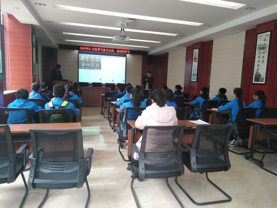 首先,双流区气象局专门邀请了成都市气象局的张老师来为同学们讲解。张老师从同学们的日常生活体验着手,诙谐幽默地向同学们讲述了常见的天气,并提出“天气预报是如何形成的”等问题,在座学生积极地发表了自己的想法,气氛活跃。