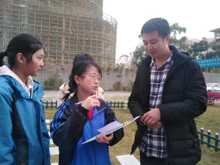 最后,同学们来到了户外气象监测站,双流区气象局的陈台长和李老师给大家介绍了科普站的观测仪器,并针对大家提出的问题,详细地讲解了不同地面的蒸发实验、雨量筒、百叶箱、温湿度传感器、能见度观测仪的工作原理。同学们若有所思,认真的记着笔记,生怕会错过这一刻科学的精彩。