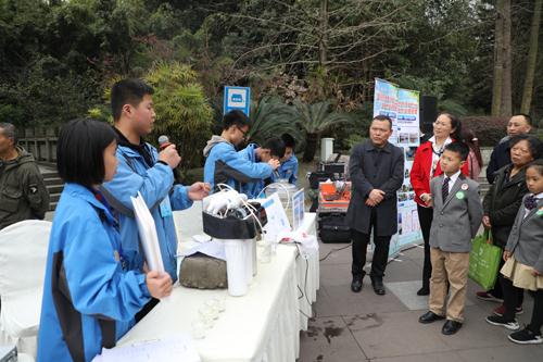 为筹办本次活动,双中实验校利用每年一次的科技节,举行了“节水护水”系列活动之“征文比赛、科幻画比赛、污水净化比赛、环保创意作品比赛、演讲比赛”,并将优秀作品在现场展出;双中实验校《爱护水资源,保护母亲河——双流城市河道白河生态系统调查及治理措施研究》(后简称“白河”课题)研究小组的学生围绕“节水护水”主题,开展了“如何能饮用到健康水的调查与实验探究”和“保护母亲河——白河流域等深图的探测与绘制” 等课题研究活动,在现场做了精彩的阶段成果展示汇报。