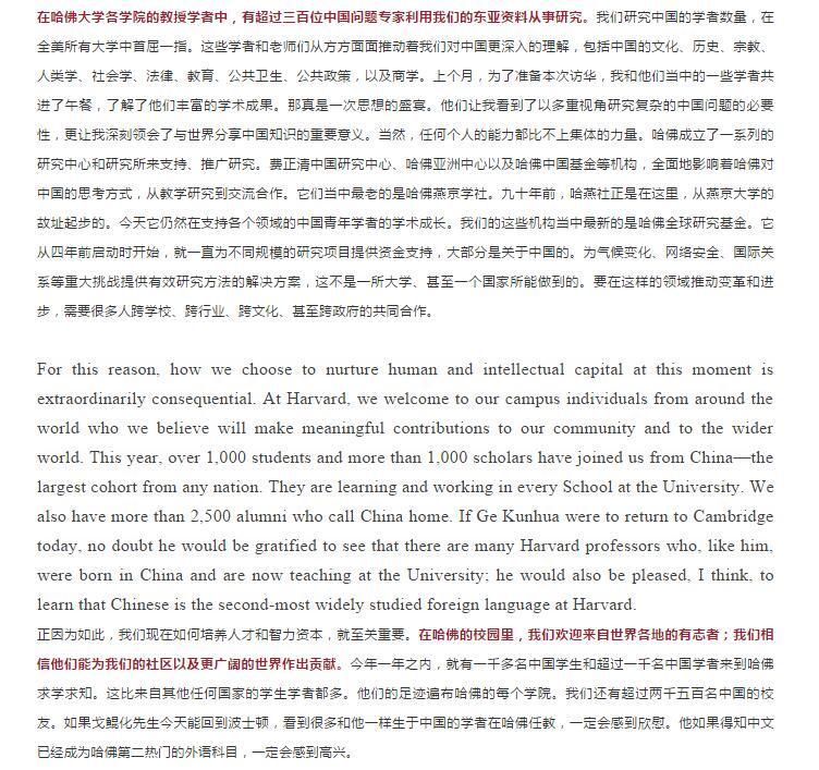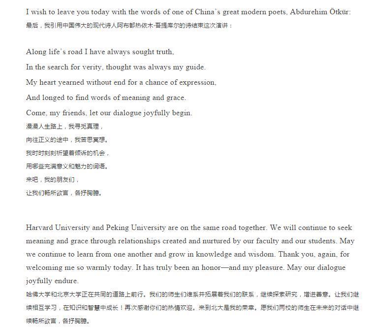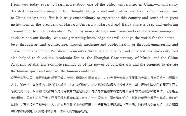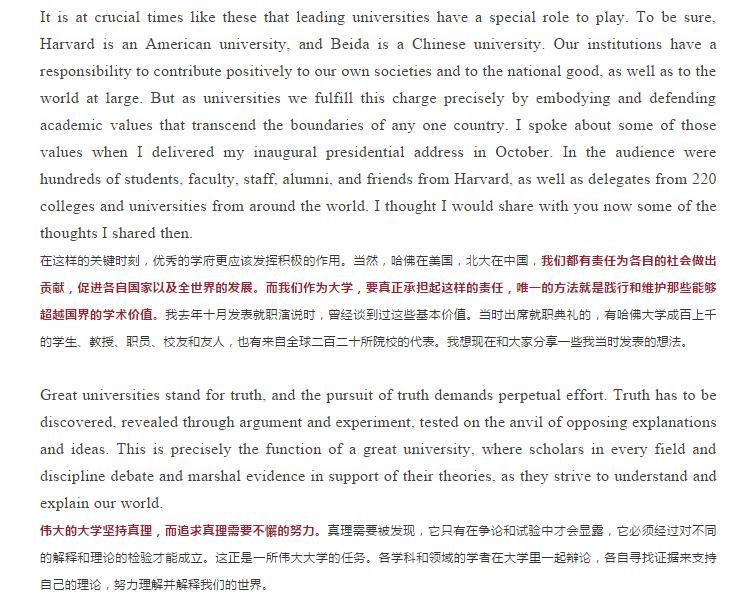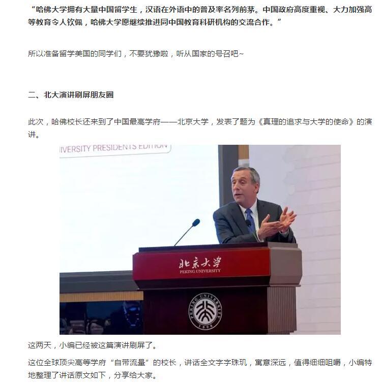 哈佛校长访华,教育开放再扩大,留美释放利好讯息,北大演讲《真理的追求与大学的使命》刷屏!