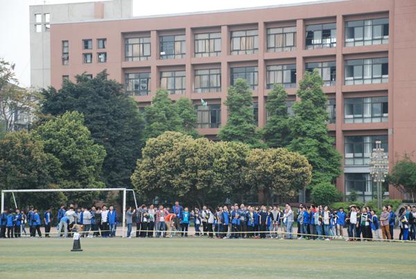 比赛开始,随着裁判一声令下,发射区内各班逐个拼命给水火箭打气。第一个出场的水火箭不负众望腾空而起,落在了13米开外的场地上。 紧接着,第二轮、第三轮、第四轮……55米、81米、105米……,比赛一轮比一轮精彩,一只只水火箭被陆续送入空中。比赛场上,掌声、惊叹声、欢呼声、喝彩声此起彼伏,现场气氛热烈,高潮迭起。在大家一次次的惊呼声中,初二22班的胡鑫同学正在紧张的给自己的水火箭加压。他的火箭喷口密封性做得很好,直累得他双手酸软发麻,火箭都还在原地没有想离开的意思,后来,换了一个大个子同学继续加压,终于,一只绿色的影子冲天而起,在一片惊叹声中,只看到一条闪亮的水线划过,水火箭迅速消失在同学们的视线中,当同学们反应过来时,水火箭已经落在运动场之外的路面上。经测量,居然达到了140米的惊人距离,创造了此次比赛的最好成绩。