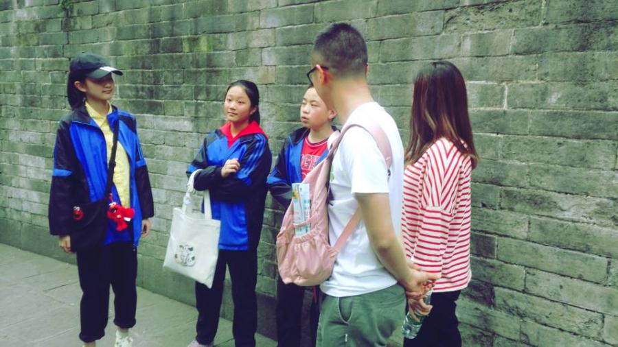 通过访问、调查,学生们发现部分走进武侯祠探究小课题仅是一次观光之旅,三国知识遗忘或匮乏,研究时间短,很多人只能在武侯祠“走马观花”。为了将课题研究落到实处,实现武侯祠课题的深度探究。我们在七年级五班推行了“走进武侯祠,我为家乡代言”小导游活动。