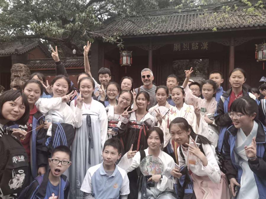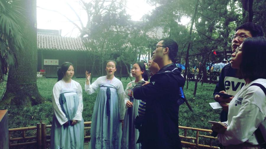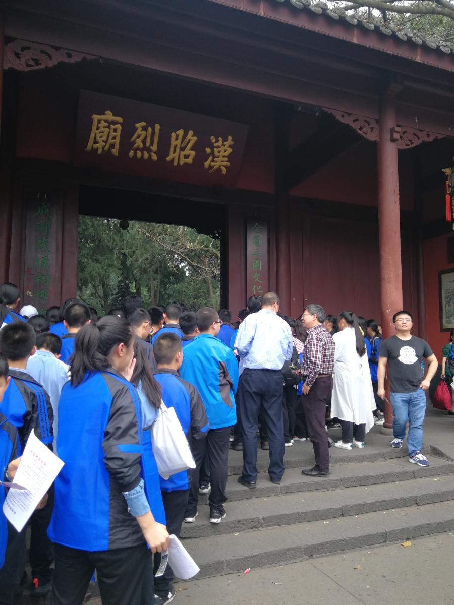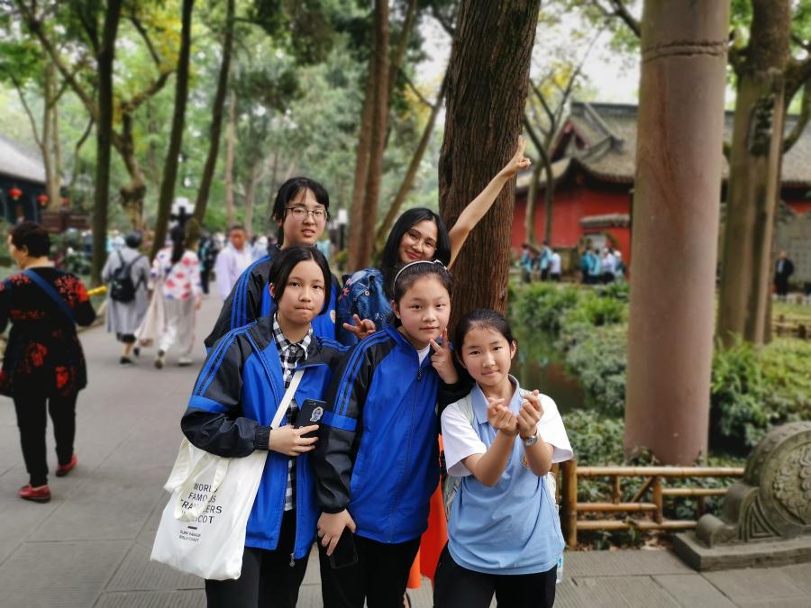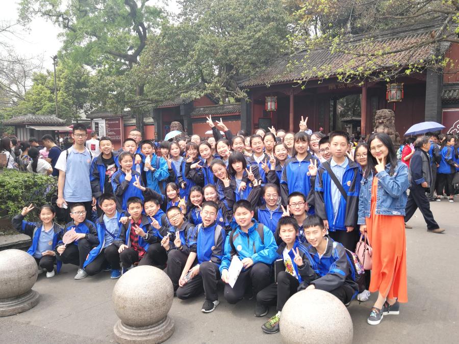 为增强学生对家乡文化的认同感,培养学生家国情怀并锻炼胆识,历史组范勇波老师指导的七年级五班开展了“走进武侯祠,我为家乡代言”小导游实践探究活动。本次活动旨在通过学生的角色转化,从文化的听众变成文化的讲述者。学生们为了实现自己的角色转变,进行了全方位准备,从资料的查找到导游词的撰写、修改,主动寻求老师、家长的帮助,一次次模拟演练,成就了最后的完美“演出”。从“唐碑”到“刘备庙”,从“武将廊”到“惠陵”,身着汉服的新双中小导游,成了“丞相祠堂”前最靓丽的风景。从最初的战战兢兢到后来的主动出击;从一次次被拒绝到后来被游客团团包围,学生感受到了为别人服务带来的快乐。这是一场真正让学生参与体验的深度文化游,学生不仅通过前期准备深入了解三国文化,而且在现场大胆与游客交流,充分锻炼了自己的语言表达能力和交往能力。