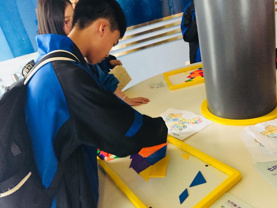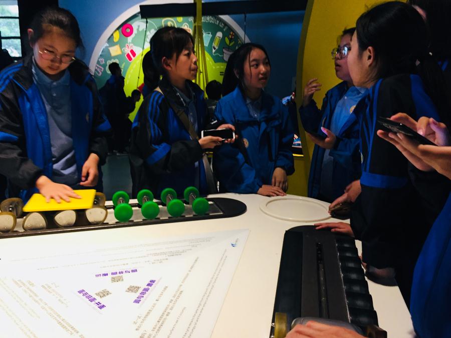 创新科技,走向未来。今天走进四川科技馆的内容也丰富多彩。结合数学学科和地理学科特点,同学们在四川科技馆数学力学展厅和生态家园展厅开展了勾圆与非圆、二进制的应用、如何设计最短旅游路线、踩踏发电、垃圾分类等内容的考察和体验活动。充分利用馆内资源,培养学生对科技的爱好并深入钻研,在体验中引发思考,激发学生创新思维。