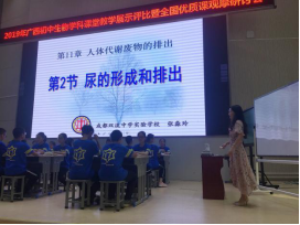 受邀在本次研讨会上示范课的三位老师分别展示了三个不同版本的教材教学内容。来自湖南省长沙市雅礼实验中学的王逗老师展示的是人教版教学内容《生物与环境组成生态系统》;来自北京师范大学石家庄附属学校郅雪静老师展示的是冀少版教学内容《细胞分化形成组织》;我校张淼玲老师展示的是北师大版教学内容《尿的形成和排出》。