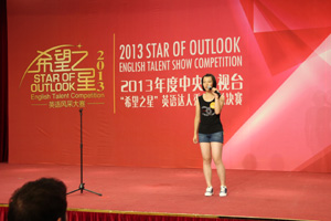 2013年“希望之星”英语达人秀全国总决赛是由国家广电总局正式批准、中央电视台社教节目中心举办的面向全国的大型电视英语比赛,总决赛在北京央视大厅举行。共有来自全国26个省代表150名选手参加此次大赛。大赛于今年4月拉开帷幕,历经多次选拔比赛,我校史玥晨同学进入总决赛,在总决赛的 “个性演讲”、英文才艺、英语情景角色扮演以及个人才艺四个环节中表现优异,以扎实的英语技能、精彩的英语演讲、敏捷的思维和出色的个人才艺征服大赛评委和观众,并以356.30分的好成绩一举夺得全国总决赛第三名(四川省第一名),摘得大赛银奖。