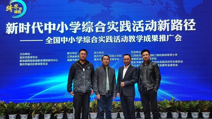 2019年5月8日,在重庆市教育学会、教育部西南基础教育课程研究中心、江西省教育学会、成都市教育学会联合举办的全国中小学综合实践活动教学成果推广会上,我校罗晓章校长助理受邀作了题为《初中综合实践活动课程序列开发与常态实施》的学术报告。承办此次推广会的单位有重庆市渝北区花园小学校和重庆市渝北区教育学会。我校附属小学杨成根校长助理、学校综合实践活动总课题组副组长龙姿君和学校VEX机器人教练员官勤学老师一起参与了本次会议。全国部分教师、教育学会综合实践活动学科委员会、成都市教育学会等组织和单位的十余位专家、领导莅临活动现场并发言,重庆市各区县近200名领导和教师代表参与观摩学习。