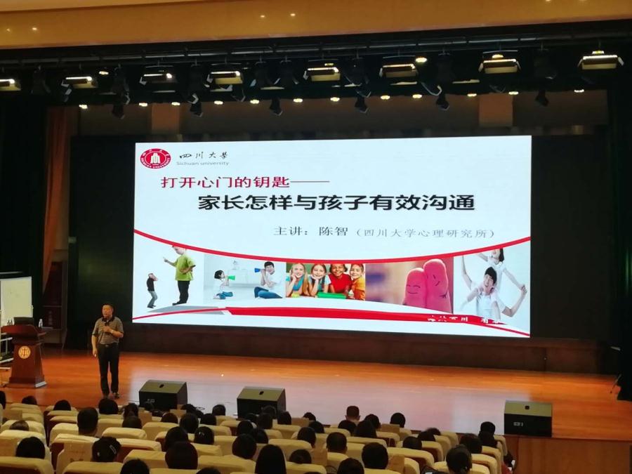 此次家长会,学校邀请了知名心理咨询专家、心理健康教育专家,现任四川大学应用心理中心健康教育研究所所长,教授,陈智先生在学校国际部多功能厅为与会家长做了题目为《打开心门的钥匙——家长怎样与孩子有效沟通》的专题讲座。陈教授认为:父母与孩子之间出现问题,很多时候都是因为沟通不畅引起的。不能有效的沟通,使得家庭教育陷入被动局面。因此,家长要正视沟通的重要性,同时,只有找到打开孩子心门的钥匙,深入孩子真正的内心世界才能真正的实现有效的沟通进而促成孩子本身和亲子关系的真正变化。陈教授还就具体的有效的沟通方法问题为各位家长做了深入浅出的讲解。教授的讲座赢得了与会家长的热烈欢迎和强烈的共鸣。