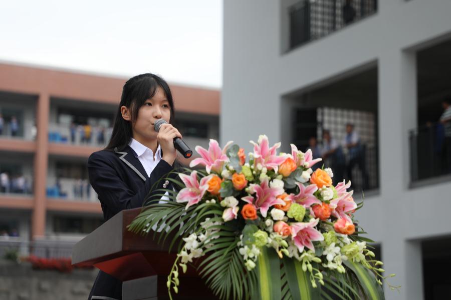 教师代表杨燕老师深情地回顾了同学们三年成长中的难忘瞬间,她说:“我们希望三年后,双中实验的精彩在你身上呈现!我们更希望三十年后,你若归来,仍然是双中实验的追梦少年!”
