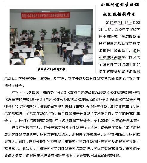 《双流县城市河道—白河生态系统调查及治理措施研究》科技实践活动掠影