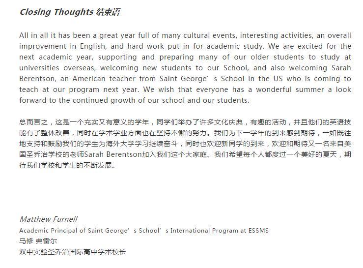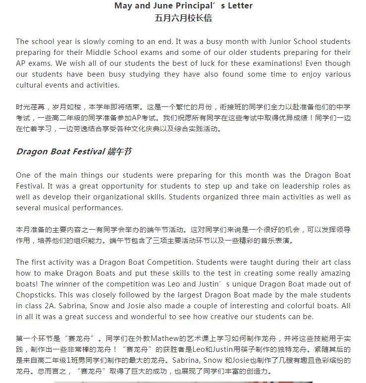 May and June Principal’s Letter 五月六月校长信