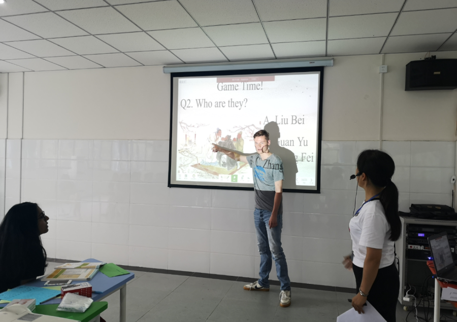 谢老师首先通过介绍四川的三个著名景点---熊猫基地、武侯祠和都江堰水利工程来了解天府文化。一提到四川,美国学生首先想到的是熊猫。谢老师介绍了大熊猫基地存在的意义和目的,以及大熊猫的生长过程,帮助同学们了解大熊猫的情况。同学们直呼,“So cute”(大熊猫)太可爱啦!在武侯祠介绍中,为了帮助美国学生了解义重桃园中的典故,中国学生表演了历史剧--桃园三结义。四川人的性格也像刘关张一样----热情、豪爽、忠诚。最后介绍了都江堰水利工程的构造原理和存在价值,这是四川人民智慧的象征。知识竞猜环节,同学们踊跃举手,对答如流。接着,第二环节----了解川剧。川剧中最有名的就是变脸,除了精彩的表演,最吸引人的就是----演员如何做到迅速变脸的。在观看视频后,同学们激烈讨论,各抒己见。在第三环节---四川美食中,主要了解火锅的历史和四川各种小吃,并在中国学生的带领下学习和表演了歌曲《Hot Pot火锅》,在全体学生的手舞足蹈中掀起了又一轮高潮。最后,在谢老师的祝福声中结束了课程学习。