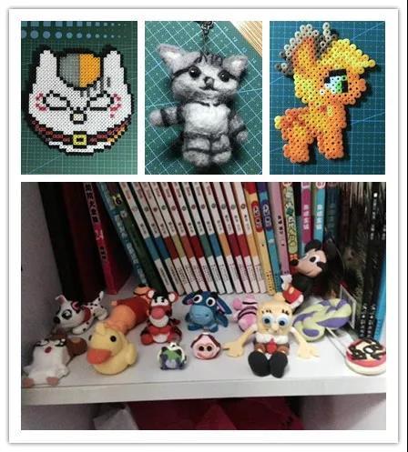 他酷爱手工、喜欢画画,动手能力超强,折纸、布偶、十字绣他都做过,小熊维尼、它的好朋友屹耳、跳跳虎、米老鼠、海绵宝宝等各种卡通形象在他的手下简直萌翻了。初中寒假时,他跟家人到西安旅游,竟在兵马俑门口卖起了自己的手工作品。