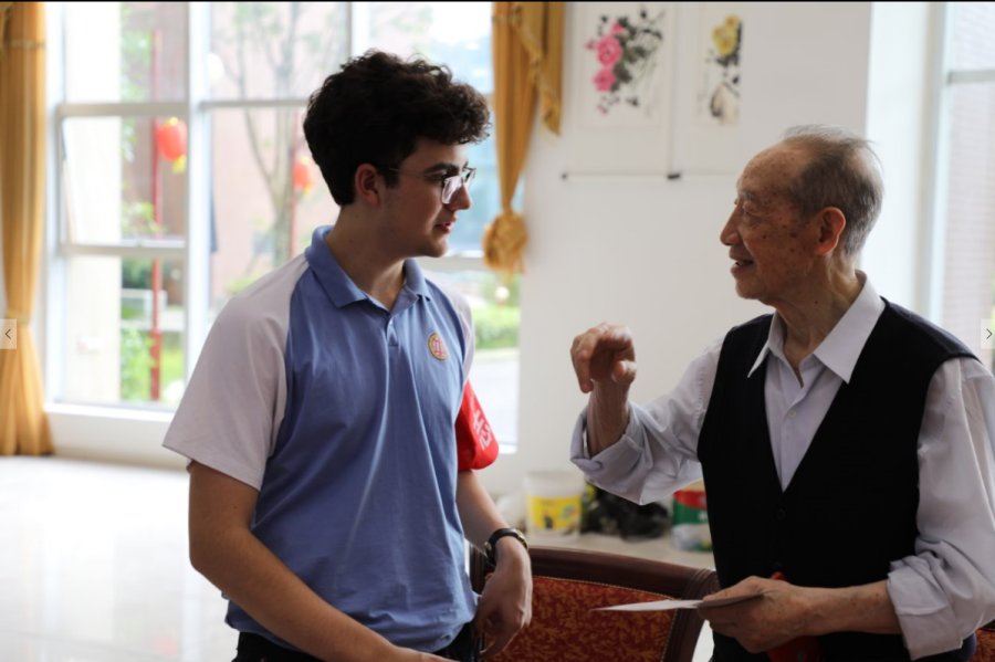 二、7月17日下午32名美国学生们,来到双流区华孝颐养居,进行社区服务活动。本次社区服务的内容分为三个部分:一、学习中医手部推拿;二、学习有关祝福老人的书法、国画并制作贺卡;三、与老人联欢。