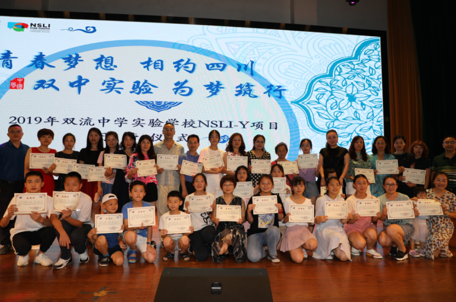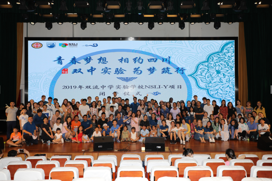 8月8日下午主题为“青春梦想、相约四川、双中实验、为梦筑行”的2019星空在线登录官网NSLI-Y项目闭营仪式在我校多功能厅举行。星空在线登录官网外事办副主任李征、星空在线登录官网教务处副主任陈国华出席了闭营仪式,与32个接待家庭一起见证这32名美国学生的成长。