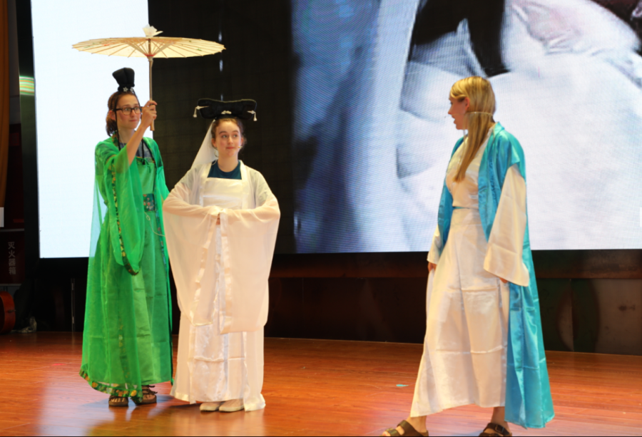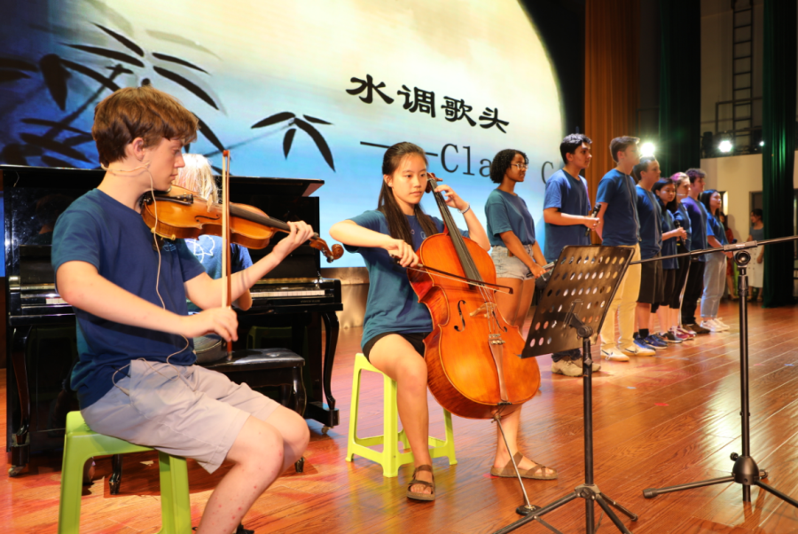 随后,32名美国学生为大家呈上了一台精彩纷呈、形式多样的汇报节目。朗诵和吟唱并用的《水调歌头》承载着世间诉不尽的豪情与离恨;一场美国版的“白蛇传”,爆笑全场;有才的美国学生演绎的《声律启蒙》以别样的魅力,让大家一起感受传统文化跳动的脉搏。在着六周的学习中,美国学生不仅仅收获了知识,更体验了不同的中国传统文化,他们将这些收获转化成了一场极具四川特色的舞台秀。为表达对中国家庭、中国老师的不舍之情,美国学生还自弹自唱《成都》和《Hey there, Delilah》,希望我们彼此心里都珍藏这份美好的回忆,再远的距离也不是问题。我校学生也等上舞台以流利的英语歌曲及时尚感十足的现代舞吸引了全场的目光与关注,体现了我校综合实践活动课程的开展为学生综合素质发展带来的优势。四川省川剧院的演员也来到现场助兴,一串串充满名族风味的演绎,一张张神奇的花脸,将川剧魅力呈现,引来美国学生一阵阵喝彩。更有来自第三极之称的西藏的聋哑学生,虽然他们的耳朵听不到但是这阻碍不了他们对音乐的热爱和对生活的希望,他们给大家跳起一首欢乐的草原,全场掌声雷动。快乐的时光总是短暂的,闭营仪式在中美学生共同吟唱的《友谊地久天长》中结束,但我们用心建立起的深刻友谊,不论何时何地,都会成为彼此心中难忘而又美好的记忆。