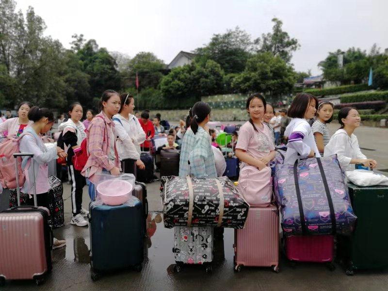 31日中午一点半,在学校安全处和德育处严格要求和周密的部署下,2022届一千余名新生打理好行装,齐聚学校操场,有序登车。尽管细雨蒙蒙,我校辅导员坚守岗位;尽管依依不舍,家长们全力支持。