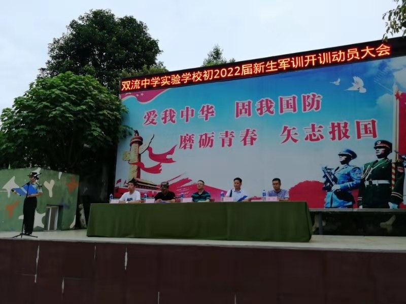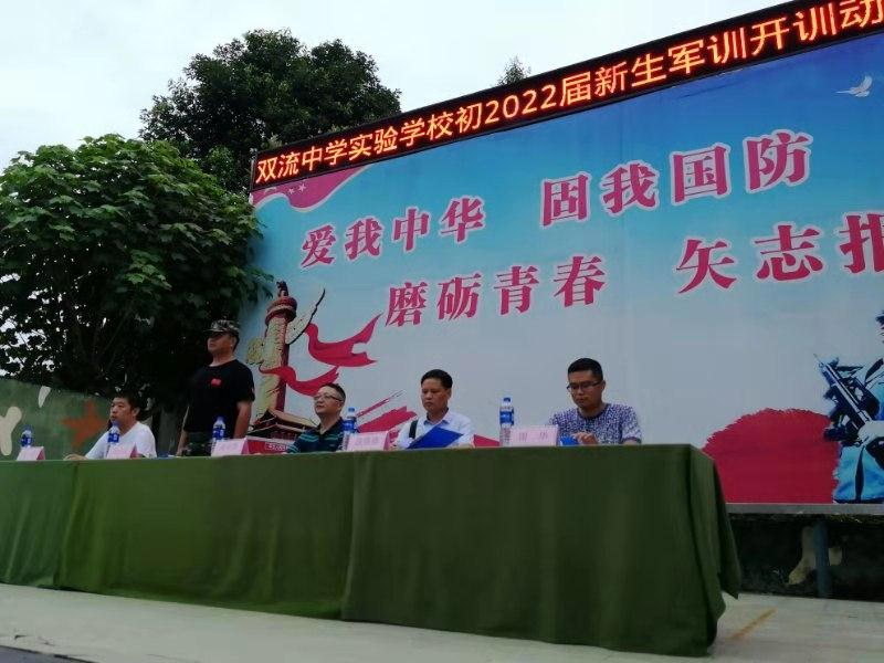晚上七点,2002届新生军训开营仪式在训练场隆重举行。安全处邓光伟主任、年级组长段绪德、安全处干事张谱、德育处干事谢华以及训练基地相关领导主席台就坐。教官代表、学生代表相继宣誓发言。段绪德组长代表学校向全体同学训示。段组长说:“军训是同学们进入双中实验的第一课,意味着同学们初中生活掀开了崭新的一页,希望同学们以饱满的姿态和青春的热情,去迎接美好的初中生活。同学们不仅要学习队列队形等基本军事技能,更要学习军人高尚的品德,学习军人雷厉风行的作风,学习军人严明的组织纪律观念。军训虽然很苦很累,会流很多汗,但是我希望同学们要战高温,斗酷暑,流汗不流泪,以饱满的精神和乐观的态度参加军训,磨练自己坚忍不拔的意志,圆满完成本次军训任务,为即将开始的初中学习生活打下坚实的基础。”段组长对同学们提出三点希望和要求:一、要明确军训的目的意义。要有吃苦耐劳的准备和战胜困难的决心,以饱满的精神状态和端正的训练态度完成本次军训任务。二、要坚定“坚持才能胜利”的信念。学习需要坚持,军训同样需要坚持。在军训的过程中不断坚持,团结互助,培养永不放弃的品质和艰苦奋斗的精神。三、要做到一切行动听指挥。要以军人的标准严格要求自己,在训练中要尊重教官,努力提高自己的各方面素质,做一个优秀的学员。希望全体参训同学刻苦训练,圆满完成各项训练任务,充分展示双中实验学生的良好精神风貌。