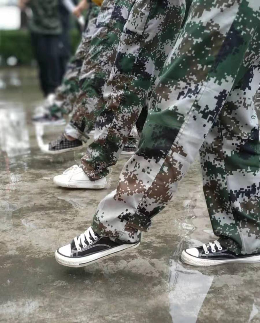 此时,雨还在下着,淅淅沥沥,水泥地上有积水。今天,气温较低,空气有点凉。我站在这里,只觉得这潮湿与微凉已慢慢浸入我的体内。于是,我抬步走进了食堂。与外面不同,食堂里没有雨声,各个排长站在自己的学员旁边,虽然挺安静,但我明显感受到一股暖意。同时,根据经验,我知道一场比赛即将开始。因为9月2号那天傍晚也是下起了雨,教官们迅速将孩子们带进这里,教他们唱起了《强军战歌》《团结就是力量》 ,还说要比赛。果然,总教官发出了指令“坐姿端正”,孩子们高声回应“端正”,随即昂首挺胸,神情严肃中带着一丝兴奋与期待。