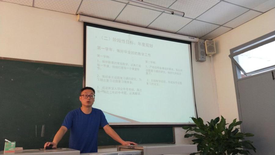 会议开始,欧老师就上学期名师工作室开展的工作和取得成绩做了总体回顾和总结,她肯定了工作室活动开展的扎实有效,成绩突出的各项工作,并希望各位学员在总结回顾的基础上能进行提升、积累和借鉴,争取更优异的成绩。随后欧老师把工作室的三年的详细规划做了详细的安排和讲解。欧老师通过ppt详尽的把整体规划罗列出来,提出了详细的实施措施。欧老师反复强调了工作室的核心任务:研究如何上好课,如何构建学员自身的教学特色,全面提高学员自身的教育教学能力,辐射引领各备课组的教学实践。同时欧老师也强调了课堂操作实践展示和研究是我们提高的关键方法,要求老师们多交流学习,多看书提高。随后,每个老师把本学期各学员的学期计划和成长的三年规划用ppt做交流分享。