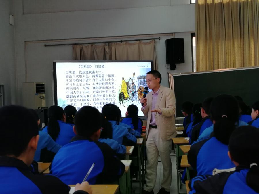 9时50分,重庆树人教育研究院专家司体忠以“诗歌中的矛盾点”为主题,以《天净沙·秋思》《卖炭翁》两诗为抓手,通过从诗歌中寻找意象、意境和情感的矛盾点的方法深入理解诗意。让学生在质疑中学、在情境中学、让学生的思维能力和情感体验更加深刻。