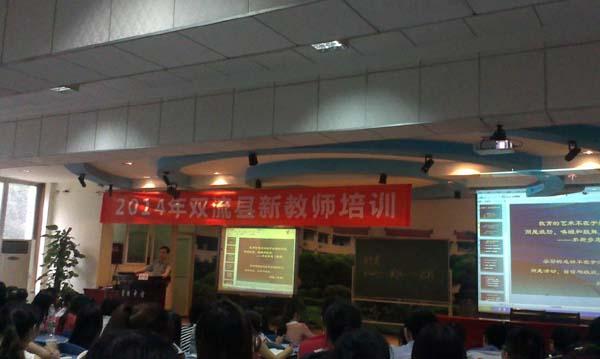 8月19日,双流县教育局领导以及全体新教师齐聚棠湖中学第一阶梯教室,2014年双流县新教师培训正式拉开帷幕。在开班典礼上,领导们对所有新教师表示热烈的欢迎以及诚挚的祝贺,并提出对未来优秀人民教师的殷切期望。县人才交流中心教育分中心主任江光智进行了新教师工作安排,四川省特级教师、双流县名教师工作室导师黎国胜为我们开展了《阅读助我成长》的精彩讲座。黎老师以自己一生的实际教育历程为例,教导新教师要为胜任工作而读书、为成就事业而读书、为追求卓越而读书。
