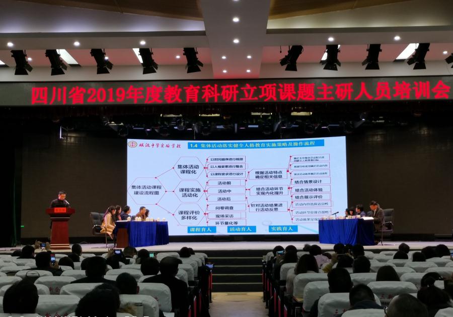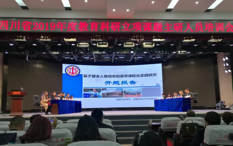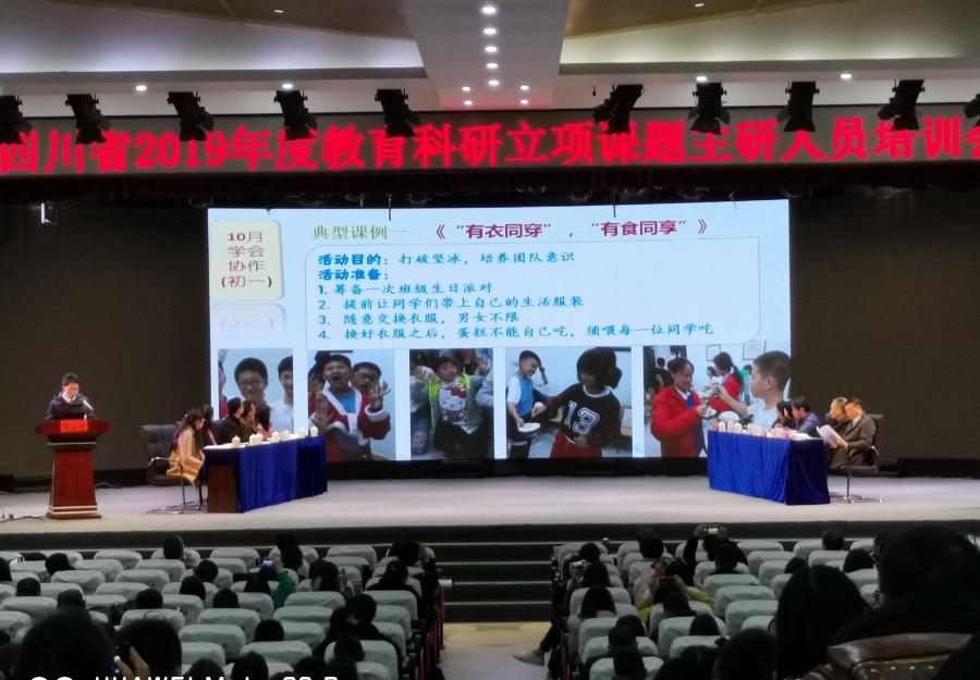 2019年11月25—26日,四川省教育科学研究院主办的“四川省2019年度教育科研立项课题主研人员培训会”在龙泉驿区第七中学举行,四川省教科院科研管理所王真东所长主持会议,我校承担的2019年度四川省教育科研重大课题“基于健全人格培养的德育课程化实践研究”在全省培训会上做开题示范展示。