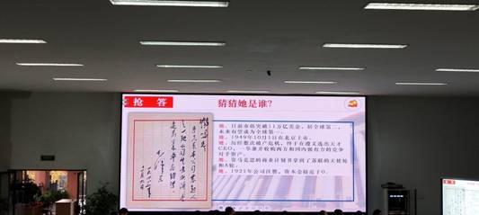 首先由成都实验学校西区谌强老师献课。他讲课的题目是《中国特色社会主义制度》。导入环节,谌老师创设情景,假如1949年新中国成立时有微信,你会在朋友圈里怎样来庆祝呢?你会对祖国说什么呢?激发了学生的学习兴趣。让容易枯燥的课堂变得有趣了。接下来利用问题导学,在屏幕上呈现出本堂课要解决的七个问题,让学生总体上对本课有了宏观的认识。给接下来的学习奠定了基础。然后设计了一个有趣的环节“猜一猜”。