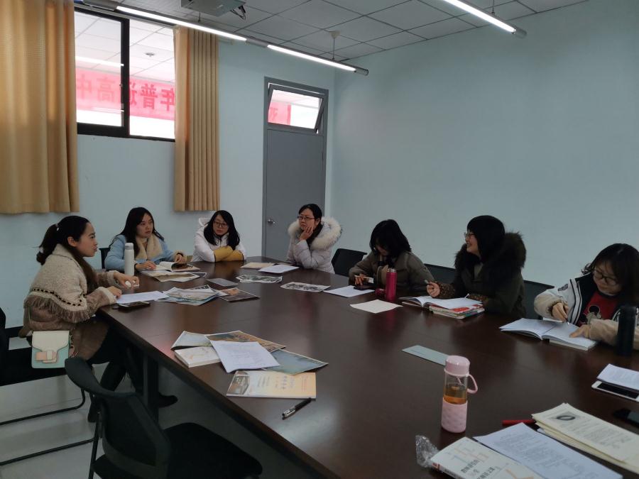 冬日渐寒风簌簌,近几日却因树树黄金银杏叶,身边多了一抹亮色,心里多了一份温暖。2019年12月2日星期一,成都星空在线登录官网杨雪梅名师工作室成员,齐聚学校图书馆,为即将到来的学校一年一度的学术年会展示课进行磨课准备。