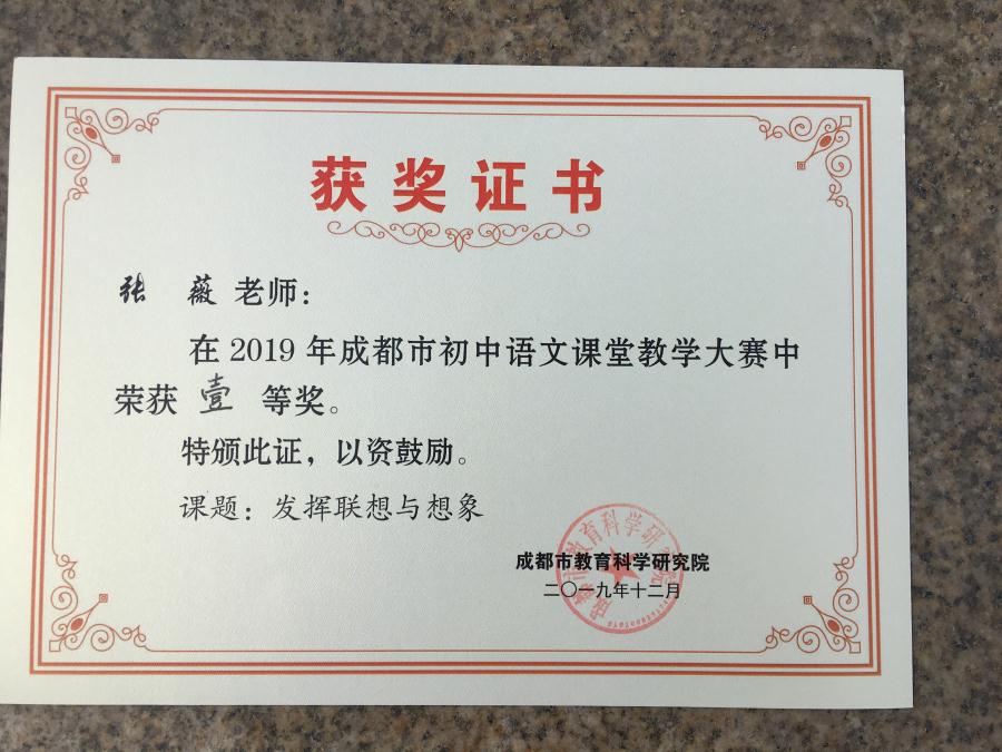 我校青年语文教师张薇勇夺成都市初中语文课堂教学大赛一等奖