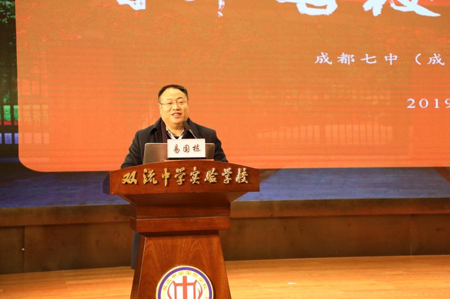 成都七中党委书记、校长易国栋先生做《百年名校,传承创新》的主题报告。成都七中校长易国栋的报告从理念到课程,介绍了成都七中办学管理、课程建设、教师队伍、学校文化、社会美誉度等方面的经验,讲述了“名校应该名在何处”的责任与担当。