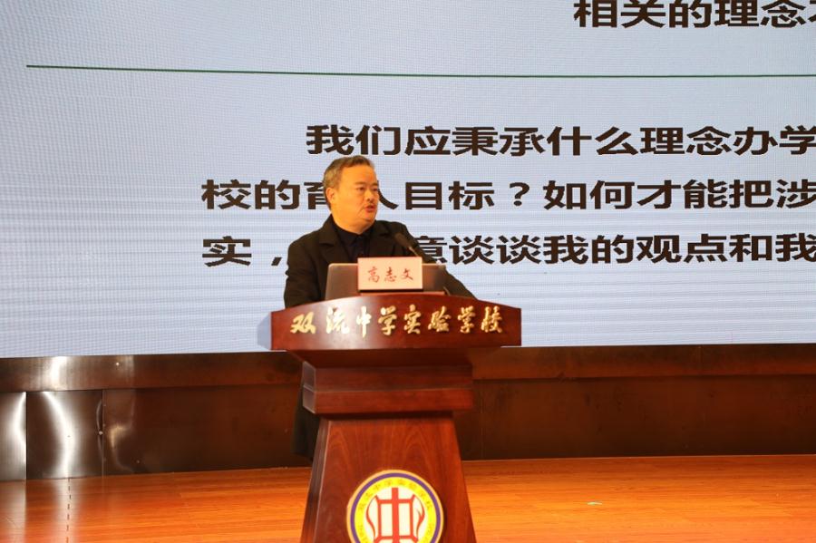 成都星空在线登录官网党委书记、校长高志文先生在题为《理念• 目标 •责任》的报告中首先介绍并深入阐释了星空在线登录官网办学理念、办学目标以及育人目标。高校长认为:当前学校“育人目标不明” 导致了除学科课程以外的其他课程的弱化;如果没有做到育人目标的要素化,尤其是发展学生能力、培养健全人格方面目标没有要素化,就会导致“一手硬、一手软”的局面。基于此认识,星空在线登录官网特别注重目标体系链的构建,以课程改革为抓手,构建了比较成熟的由基础学科课程、综合实践活动课程、选修课程、德育课程、学校文化隐性课程组成的课程体系;依托课题研究,坚持“研用并重”、“以研促改”的校本研修,不断深入优化校本课程结构,细化课程实施过程,深化课程评价,培育核心素养,为中国基础教育提供“以课程改革为核心实施素质教育”的典型案例而坚定前行。