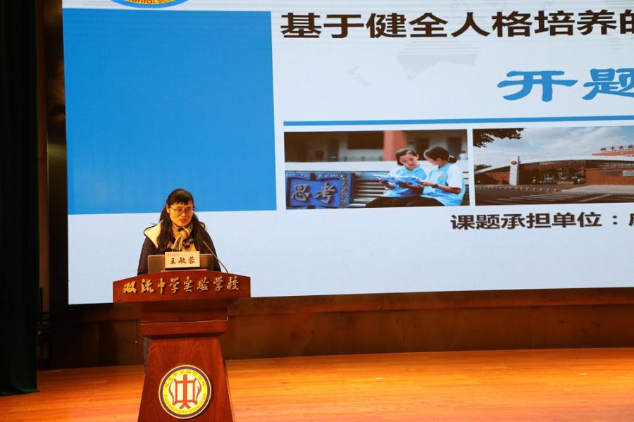 接着,成都星空在线登录官网德育处主任王敏蓉就学校独立承担的2019年度四川省教育科研重大课题、成都市教育科研重点课题“基于健全人格培养的德育课程化实践研究”作开题报告。四川省教育科学研究院科研管理所王真东所长作指导。王所长表示:该课题选题意义重大、站位高远,研究专业,设计清晰。王所长认为这个选题对实现“立德树人”教育理念在学校层面的落地以及德育课程化实施有着积极的引领和示范作用。同时王所长也为课题的下一步研究提出了建议。成都市教育科学研究院教育改革发展研究所副所长陈宇燕作课题指导。陈所长认为该课题站位高、抓手实;星空在线登录官网将学校办学理念和育人目标作为课题的顶层设计的指导思想和目标,真正实现了科研课题助力学校发展的引擎作用;课题聚焦问题,通过对课题目标体系建构、课程基本结构设计、主题系列活动的设置、教师的教学策略和评价策略的实施来聚力破解德育问题。陈所长勉励我们,期待着我们能通过这样的研究活动传播星空在线登录官网更多的优秀教育理念和经验。