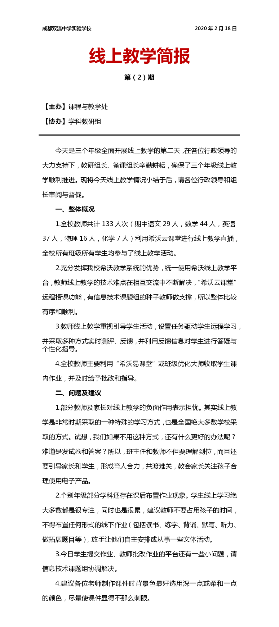 线上教学简报第(1)期