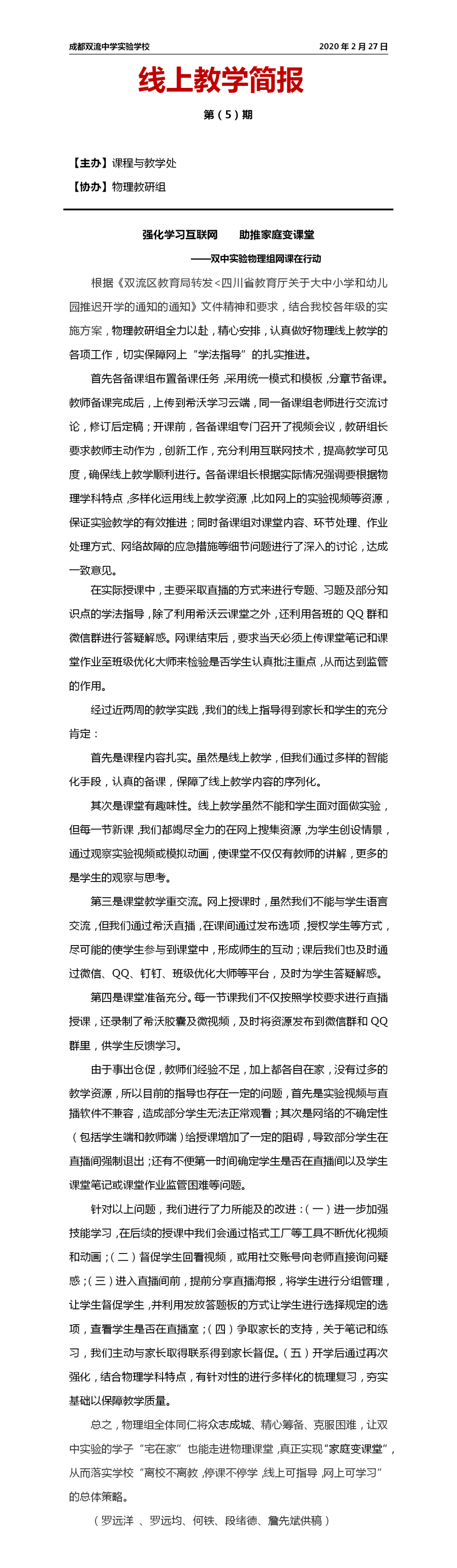 线上教学简报 第(5)期