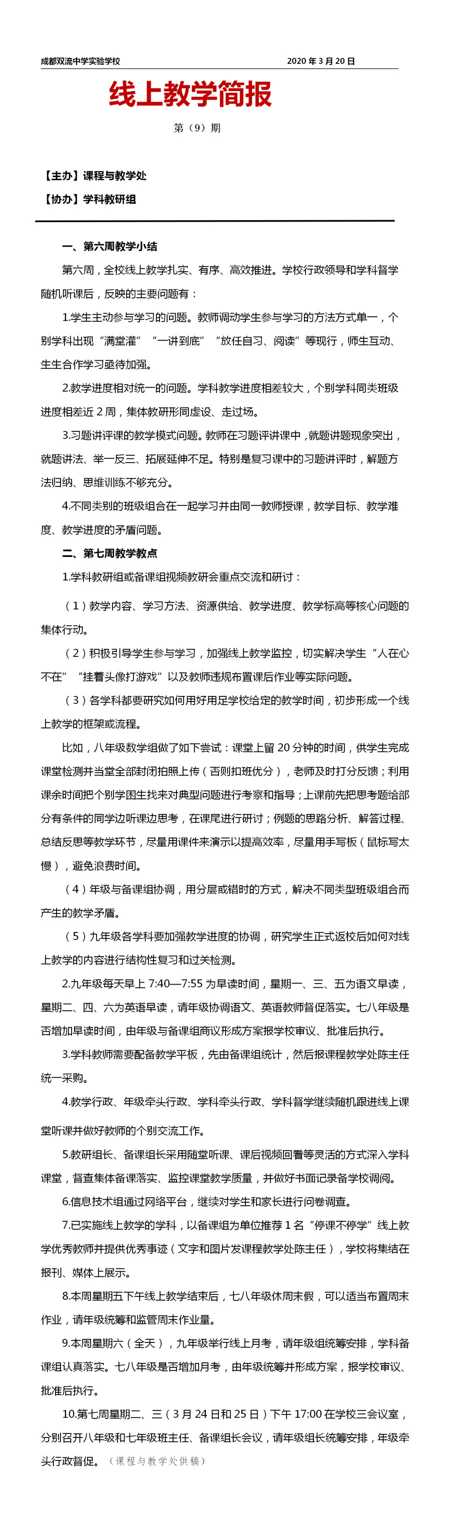 线上教学简报 第(9)期