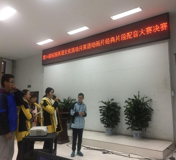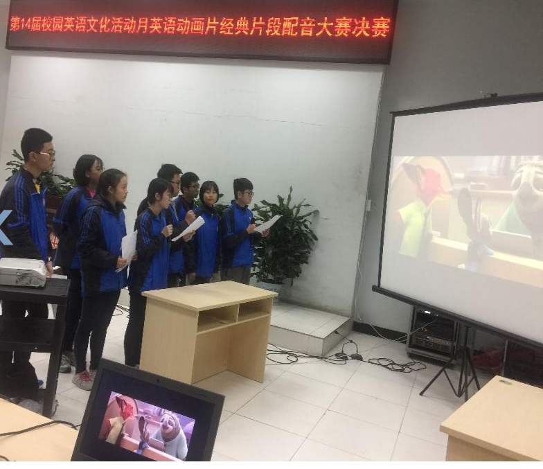 12月6日下午6:00,第14届“校园英语活动月”9年级经典英语动画片配音比赛在学校学术演讲厅举行。由于九年级的同学学习时间紧迫,本次只有英语班6个班参赛。同学们对《疯狂动物城》、《美女与野兽》等经典动画片的演绎,展现了同学们在平时的英语学习过程中对语言素养的训练。