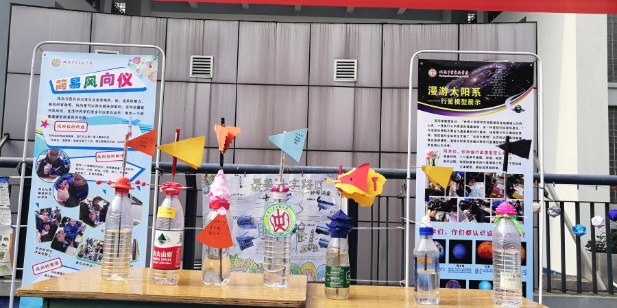 《走进气象站》选修课程中,向敏、刘晋希老师带领同学们学习了气象常识,利用生活中的物品制作了简易风向仪,以便观测生活中的风向。
