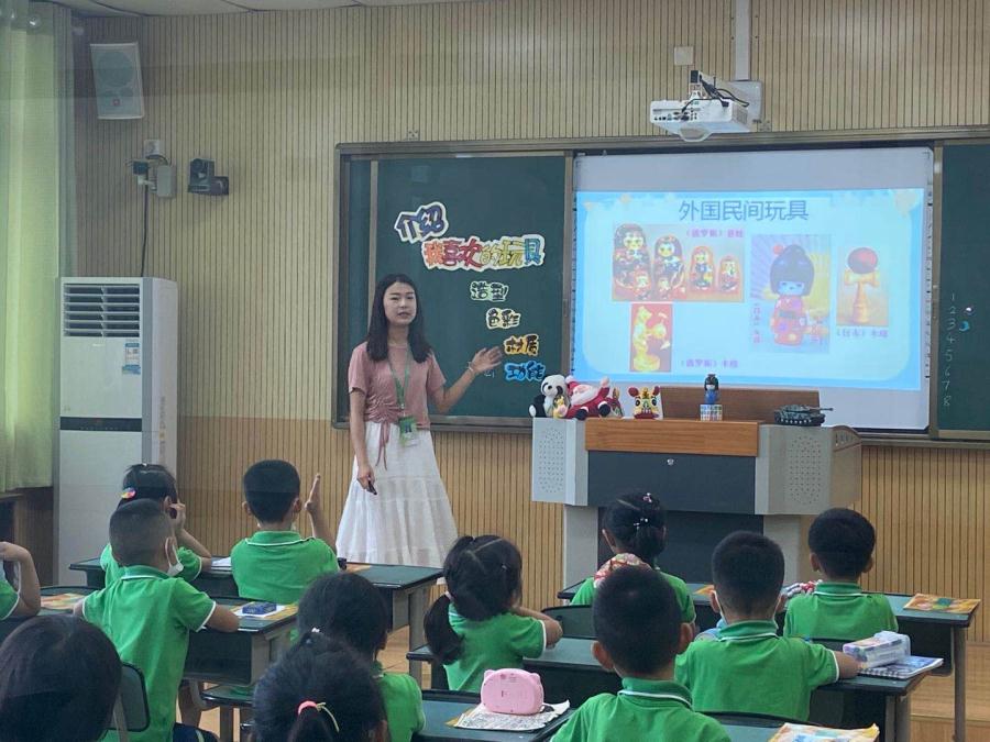 彭宇老师带来是一年级美术课《介绍我喜欢的玩具》,通过小游戏“我说你猜”进行激趣导入,充分调动了学生的学习积极性。观察交流,进一步从造型、色彩、材质、功能等方面进一步探究描述玩具的方法。课前收集了关于民间玩具、外国玩具的资料并进行展示,激发了学生对民间玩具的兴趣,培养了学生课前收集资料,小组合作汇报的能力。整堂课情境创设有创意,符合小学低段学生的认真特点,故事创编有新意。