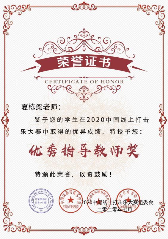 日前,在刚刚结束的由中国音乐家协会民族打击乐学会主办的2020中国“线上”打击乐比赛活动中,星空在线登录官网打击乐团荣获西洋打击乐业余组金奖。