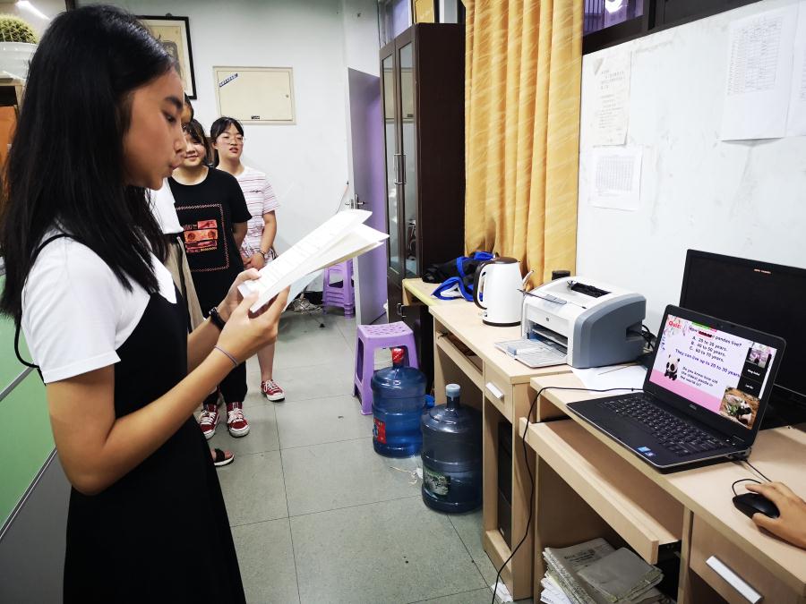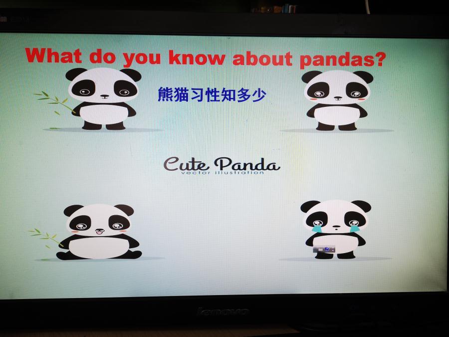 8月5日晚,我校八年级英语班的五位同学为满足美国学生的“熊猫情结”,精心设计了一堂“乘风破浪”画熊猫的文化体验课。同学们先通过一段熊在猫基地拍摄的视频,向美国学生介绍了熊猫的生活习性和特点,还根据视频内容,设计了几个互动的知识抢答来加深美国学生对熊猫的了解。然后同学们又通过电影《功夫熊猫》中的一些片段,向美国学生展现了熊猫在不同情境下的各种面貌,由此开启美国学生画熊猫之旅。