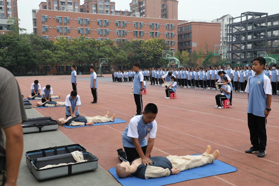 莅临大会现场的有学校高志文校长、安全处邓光伟主任、年级组长本成军、德育处王俊、安全处张谱、训练基地相关领导和学校40名辅导员老师。